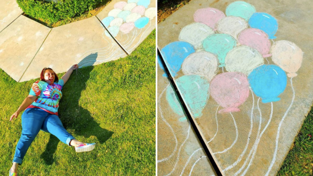 One weekend, Ferdy and I decided to head outside to add some chalk art to the sidewalk. It may be a small activity, but we found we really enjoyed those fun, simpler activities we used to do when we were younger. From hearts and smiley faces to rainbows, we drew all sorts of masterpieces—but this bundle of balloons was my favorite. At least we got a pretty funny picture out of it.