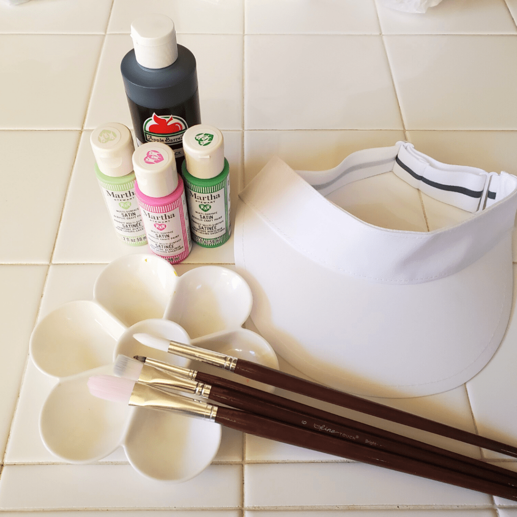 For this project, you can use any visor you have on hand. Visors work perfectly for these fruit hats so it truly looks like a slice of fruit. I got my white visor from Walmart for only $7 and it is the perfect canvas.