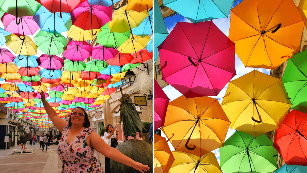 When Ferdy and I visited, there was a rainbow of hundreds of colorful umbrellas brightening up the sky and it was such an amazing sight to see! It was a fun, Instagramable spot in Paris besides all of the major tourist destinations. In a subsequent installation after we visited, there were hundreds of umbrellas in various shades of pink.