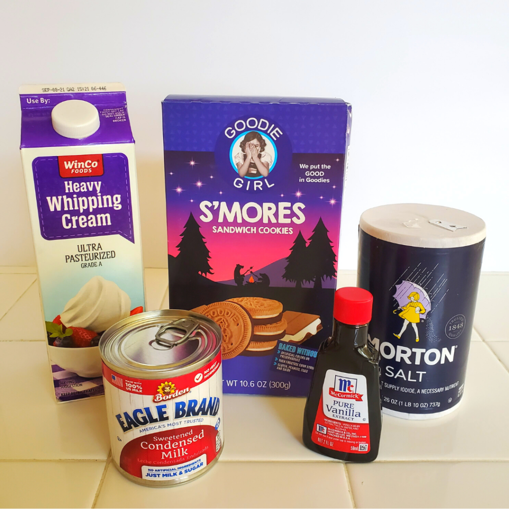- Sandwich cookies of your choice (Pro tip: These Goodie Girl S’mores Cookies are delicious in this ice cream!)