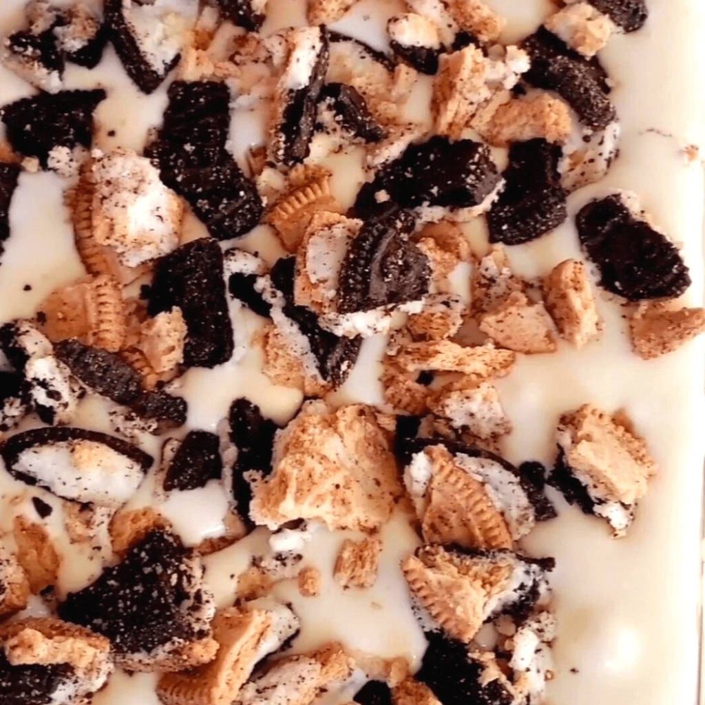 If you’re not a big cookies and cream fan, that’s okay! You can easily swap out the sandwich cookies in this recipe for the topping of your choosing—just follow the base of the recipe!